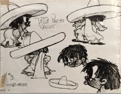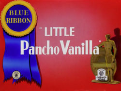 Although glancing mention of the film was finally brought up in one of the last comments to last week’s bullfighting articles, I feel compelled to give coverage to Little Pancho Vanilla (Warner, Merrie Melodies, 10/8/38 – Frank Tashlin, dir.). This remains, for reasons of stereotypical portrayals of Mexican characters, one of the hardest to see Merrie Melodies, rarely if ever getting airplay. (None of the local stations in any of the Boston or Los Angeles markets who had access to the A.A.P. package were ever known to show it in my day.) This for many years provided an intriguing mystery for comic-book collectors, who would frequently encounter Little Pancho Vanilla stories among Warner Brothers’ comic reprints, yet had no idea of his animation connection or whether his depiction in film was anywhere close to the printed characters. The short answer to the question is, no – there was little resemblance between the film and the strip. The comics depicted Pancho as an average Mexican child, of reasonable intelligence and skill, dreaming of growing up to become a bullfighter, but dealing with the nervous antics of his frustrated father, who has been around the block enough to see through all the glamour of being a Torero, and is more aware in his present state of the dangers of the occupation, and of the on-the-job frustrations of pleasing his boss Ranchero. The comic series was well-drawn, without any strong suggestion of stereotype with the possible exception of Mamacita, and generally reasonably entertaining. The same cannot be said of the Tashlin original. It is first hard to determine how the comics artists arrived at their own designs and models for Pancho, as Tashlin’s child looks nothing like him. Tashlin continues to use the broad round face structure and apple-cheeks we associate with his unique designs for Porky Pig, on Pancho and Mamacita. And there is no sign of Papa in the film, nor of any Ranchero. The plot line is absolutely meager.