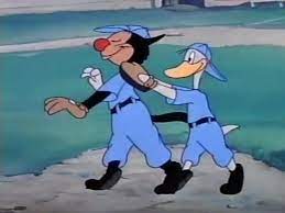 By the way, this remake has a better ending than the original, as Popeye winds up being the one who gets injured, but the hospital in which Olive works turns out to be a cat and dog hospital. The two distraught sailors go looney, reacting by letting out with endless meows and barks, and are both finally carted off to a medical institution – in a paddy wagon, bound for the Happy Valley Screwball Institute.