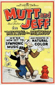 To begin with, some clarification appears necessary concerning the contributions of Mutt and Jeff to the subject. Dr. Toon referred to an episode without title from 1922, while some of the readership seemed to interchangeably banter-about the titles “The Bull Fight” and “Mixing in Mexico.” This confusion appears to stem from a home movie edition of “Mixing In Mexico”, which erroneously retitled the film as “The Bull Fight”, and has circulated widely on the internet. However, this cartoon was produced in 1925. The real “The Bull Fight” was their last release in 1922, and, while no print of the film is yet known on the internet, it seems to exist (posted in the holdings of the Library of Congress), and a title card bearing a release credit to William Fox has surfaced on a Mutt and Jeff Wiki. However, even the Wiki is confused, as it follows the image with stills from an amber-colored print (while the Fox card is not tinted amber) which obviously derive from the familiar “Mixing in Mexico”. By the time of “Mixing In Mexico”’s release, the Fox distribution had ended (earliest prints currently known of episodes from this period give distribution credit to “Film Distributors Ltd.”) So the located title card is real, while the stills from the cartoon are not. “The Bull Fight” is not the only unaccounted-for Mutt and Jeff possibly touching on the topic subject, as their 1918 filmography also includes the presumably-lost “A Lot of Bull” and “Throwing the Bull”, while 1919 titles include “The Cow’s Husband” – a title Max Fleischer would reuse during the Talkartoon days, as observed in a reader’s reply last week – and “Mutt and Jeff in Spain”. As I’ve observed on prior occasions, how much we may have lost in tracking the true origins of classic animation gags and tropes from the loss of such a large percentage of the Mutt and Jeff archive.