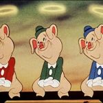 The Hams That Couldn’t Be Cured (3/4/42) – Mr. Algenon Wolf, local music teacher, is about to be hanged at dawn for attempted murder upon innocent three little pigs – until he is allowed to tell his side of the story. Transforming his voice from tough yegg to effeminate tones, he recounts the morning the pigs arrived at his comfortable home, seeking someone to “loin” them music. “Shoot the tune to me, goon”, one of the pigs says. It is obvious the pigs know some music, and they convert a beginners’ piece, “Kreutzer’s Etude” (a classic exercise for violin, most often associated with the music lessons taken by Jack Benny with Professor (Mel) LeBlanc) into a dixieland jamboree. The pigs huff and puff on their instruments, turning the wolf house into a shambles, and inflating its walls so that it blows apart from the inside. The sheriff is swayed, and orders the crowd to “Get those three pigs”. As the mob leaves in pursuit of the trio, the wolf reveals to the viewing audience that it was all a big lie he put over on them – but he accidentally pushes the lever to the trap door of the gallows on which he is standing – and miraculously ends up suspended by his tail from the noose, screaming to be let out of here. I am not able to locate any commercial recordings where the Etude was actually performed straight for the commercial market.