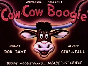 As for the title song, it has a curious history. It was composed for and originally intended to be introduced in the Abbott and Costello feature, Ride ‘Em, Cowboy. Ella Fitzgerald and the Merry Macs were signed for the picture, marking Ella’s screen debut. The song was recorded (a rare Universal studio disc exists in the hands of collectors, containing the soundtrack version on side 1, and Ella’s second number from the film, “Rockin’ and Reelin’”, as the flip), but at the last minute was cut from the film, the producers deciding to make a substitution to capitalize upon Ella’s successful recording career. To give her instant recognition on screen, her opening number became a version of her famous recording hit, “A Tisket A Tasket”, which she had performed with the Chick Webb band on record, instead of presenting her singing an untested new number. The producers should have left well enough alone, as their new number proved to be just about as powerful a record seller as Ella’s old hit. Ella did ultimately issue a recording of the piece on Decca, accompanied by the Ink Spots, which scored respectable sales. But, without the connection of the number to her from a film performance, the hit status went to newly-formed Capitol Records, who scheduled their first recording session with bandleader Freddie Slack and vocalist Ella Mae Morse to cover the piece. The recording was said to have been waxed in one take, and Ella Mae would relate that she broke into tears when session director Johnny Mercer would not let her have a second crack at the vocal. Johnny claimed that it was already perfect. His judgment must have been right. It sold a million copies. As for the sheet music, the Lantz cartoon, probably already in production concurrent with the filming of the feature, continued on track despite the cut of the number from Ella’s performance – so, by default, Lantz’s film became the song’s screen debut, and an illustration of the cattle from the film would appear on the published music’s cover. Other recorded versions included Yvonne Blanc and her Trio Swing on HMV’s “Disque Gramomophone” label, a London recording by Fats Waller as a piano solo, released posthumously and transcribed from piano roll, the Royal Air Force Dance Orchestra on British Decca, Joe Loss on HMV, an aircheck version (possibly by the Army Air Corps Band) of Glenn Miller issued on am RCA album, “The Lost Recordings”, a short version likely from an aircheck by Maxine Sullivan issued on an unknown album, and another aircheck from the Panther Room in Chicago by Gene Krupa’s orchestra with vocalist Anita O’Day. Joe Daniels and his Hot Shots in Drumnasticks would get the Parlophone version. Chico Cristobal and his Boogie Woogie Boys had a version on the Riviera label. Dorothy Dandridge would perform it in a Soundie. An anonymous solo, possibly intended for piano instruction, would appear on Statler Records. A 1954 country-rocker revival would be issued by Dottie Dillard on Dot. Another late revival was made by Chuck Miller on an unknown label. Even in the LP era, the song would be remembered by The Judds on the Curb album, “Heart Land”. But perhaps the wildest rendition would appear as the finale of the Jerry Fairbanks’ “Speaking of Animals” short, “Who’s Who (in Animal Land)” – sung by a live-action herd of cows with animated lips! The “Animals” short would win an Academy Award.