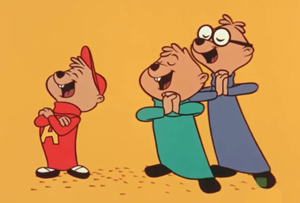 The Brave Chipmunks (Format Films, The Alvin Show, 10/25/61) is a musical segment for Dave Seville and the Chipmunks, based off a cut from the Liberty Records LP, “Around the World With the Chipmunks”. On a visit to Mexico (with added animated material showing Alvin wrecking the pottery in a Mexican bazaar), the chipmunks spot a bull ring, and get the notion to fight a bull. Without invitation, they parade into the arena singing, and soon meet with a charging bovine. Alvin bravely waves a red cape, while his two brothers turn chicken quickly and run. Dave races in, rounds up Simon and Theodore, but has a tough time retrieving Alvin, who continues to wave his cape even when picked up by Dave, bringing down the fury of the fiery hooves upon all of them. They ultimately duck behind one of the barriers long enough for the chipmunks to make a discovery, that changes the whole complexion of the match. Their song includes the lines, “We wanted to fight the bulls. We musta been crazy.” They suddenly raise a toast, in the form of three glasses of milk, and conclude that they’re sure glad the bull’s name is “Daisy” – actually, a cow.