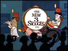 A Bull For Andamo (Cambria, The New Three Stooges, circa 1965-66) – Another typically poor outing from this typically poor series. The Stooges are in the transport business, hauling by truck a bull for delivery to the bull arena. Without much in the way of onscreen visualization or explanation, a rapid ride up and down hill somehow releases the beast from the van. Moe spots the bull next to a tree, and tells his partners to get him – then reverses his command, as the bull is coming of his own accord, to get them. The Stooges dive for safety into a mud hole. Meanwhile, the bull hears cheers from within the arena, and remarks “My fans await”, thus entering the arena of his own choice. The drenched Stooges spot three outfits of dry clothes hanging over a fence, and make a costume change to get dry – not noticing these are matador’s outfits.