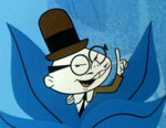 Bull Fright (or Olay Down) (Total Television, Tooter Turtle (from “King Leonardo and his Short Subjects” – air date unknown) – This episode may have been produced at the time production of the series was shifting from TV Spots to Gamma Productions in Mexico. Evidence of this is that Mr. Wizard the Lizard is completely off-model, with white locks of hair instead of stringy black, and red robes instead of blue (which makes a mess of things if this film is run with the original standard wraparounds used from the earliest episodes, as the look changes completely for the final stock shots). Presuming this was animated at Gamma, the choice of subject matter would make sense, and may have been suggested by the local animation staff. The episode also breaks with tradition, having a much longer opening sequence between Tooter and the Wizard than I have seen in any other episode, as Tooter tries to convince the Wizard to make him a famous matador like the one he’s seen in a colorful bullfight poster. Wizard warns this is a sport for men, not little turtle boys. But Tooter claims it’s different this time, ‘cause he’s been practicing. All he needs to show his stuff is a cape – and the Wizard’s red tablecloth will do. Of course, there’s a breakfast-ful of dishes and glasses atop it, which come crashing down when Tooter gives the tablecloth a yank. Tooter then asks Wizard to put his fingers on the sides of his temples like horns, and charge him. The Wizard does, catching Tooter’s cape as he passes through. The cape drapes over the Wizard’s head, and he crashes into the table. “You win”, says the muffled voice of the Wizard, as he finally utters the incantation to transport Tooter to the bull ring.