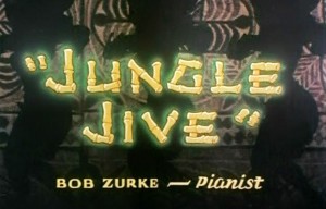 Jungle Jive (5/15/44) – An essentially plotless musical vehicle, which provided the final chapter for a piano great of the big band era. Bob Zurke had come to prominence with the Bob Crosby orchestra as arranger and soloist, then formed his own short-lived big band. His luck and fame had taken a downhill turn for personal reasons by the time of this cartoon, when he had been out of the recording studio for years. This film would mark his final recording and studio session, and the title piece is his own original. He would die before the film’s release. The film is set in the Sandwich Islands (with typical puns on various kinds of edible ones). Though several of the local natives are drawn with oversize lips similar to those seen in “Scrub Me Mama” and “Boogie Woogie Bugle Boy”, Lantz does not repeat his past racial stereotype mistakes by portraying the natives as black cannibals, but lightens their skin several tones to make the depictions at least less controversial. The painting change worked, and the film was able to remain in TV syndication. The title number is performed by a large overweight native (is he supposed to be a tropical Fats Waller?) who tries to tickle the ivories upon a piano that washes up in a crate along with other musical instruments from a shipwreck, and a crabby crab who also turns up inside the crate, who is very particular about sharing the piano keys with anyone, and prefers to do the showing-off himself. The crab, by the way, is another loose adaptation of the classic design originated in Disney’s “Hawaiian Holiday” and then lifted by Harman and Ising for “The Little Goldfish”, though rendered in simpler stylized color in James Culhane’s usual economic and artistic style.