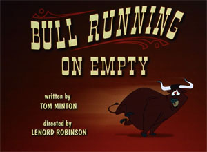 Bull Running on Empty (Warner, The Sylvester and Tweety Mysteries, 11/11/95) is sadly perhaps one of the weakest episodes of this series I have encountered. Made in an early season when one episode spanned the entire half-hour, it provides us with material that would have felt labored in running length even had it been cut to 10 to 12 minutes. Tweety and Hector seem to be given virtually nothing to do (although Tweety inexplicably comes up with a pair of thermal binoculars to give Granny to ultimately locate the stolen item), and Sylvester performs only two functions: mimic for one sequence his “scaredy cat” behavior from the classic cartoon of the same name in observing and keeping out of harms’ way the rest of the gang from the systematic destruction of Granny’s hotel room by saws appearing in the floorboards – and spending the entire remainder of the cartoon running from the bulls of Pamplona. (Sylvester complains, “I’ve heard of a running gag, but this is ridiculous.”) The “mystery”, when unraveled, makes no sense (and not in a funny cartoony way – just isn’t thought out in any manner). A museum artifact known as the Pamplona Periscope is missing, stolen from a hole cut or gnawed through the wooden base of its display case, leading to a crawl space in which only rats seem to reside. A caretaker of the bull ring seems to have had his apartment ransacked, and the ring is left locked, leaving the bulls running in the annual festival with no destination to run to (and free to endlessly pursue Sylvester). Attempts are made to keep Granny out of the way, by sawing her entire hotel room out of the building, then later locking her in the Pamplona public library. All of this boils down to the revealing of a supposedly old (and smelly) adversary of Granny’s – a crook living in the sewers called the Spanish Mole, who has used trained rats to commit theft of the Periscope and his other dirty work. A mere butt from Sylvester’s pack of bulls brings him to justice. It seems that he had disguised himself as the town’s bull ring caretaker for years, living under their noses (yet no one seems to have previously noticed his smell). And just when it seems Granny will reveal the Mole’s master plan to the populace, posing to them the questions why he waited until now to pull his crime, and why he locked the bull ring, Granny performs the ultimate cop-out to reveal how little the writers have thought this through, remarking, “Beats the heck out of me. I was hoping you’d fill me in.” For the quick half-smile this line delivers, it hardly justifies the existence of this episode.