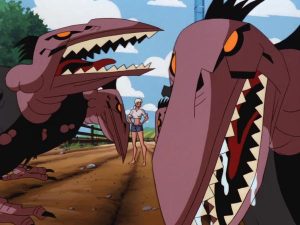Throughout the episode, Rico feels dejected that his own dolly was sacrificed to make the girl happy. Private keeps reassuring him that good deeds don’t go unrewarded, and that what goes around, comes around. Yet, the penguins’ luck seems to keep going from bad to worse as the control officer remains hot on their trail. The penguins seem finally cornered, with the van blocking their path to the zoo. The officer wise-cracks that he knows why penguins are from the antarctic – they can’t take the heat. This angers Rico, who coughs up, from his never-ending belly full of useful objects and supplies, a bullfighter’s hat and red cape. He waves the cape before the van, taunting its driver to advance. The van charges Rico at full speed, but the penguin nimbly dodges, again and again, creating a needed diversion. Meanwhile, the other penguins swing down on ropes as the van passes, each of them armed with a monkey wrench. When the van pauses briefly at the end of each charge, the penguins use their wrenches to loosen bolts in the hubs of the van’s wheels. By its final charge, the van’s wheels fall off, capsizing the vehicle on its side. Rico mutters one word of clear dialog: “Ole!”