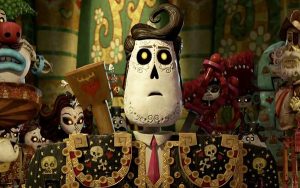 There have been two fairly recent features built on The Day of the Dead. I am not truly into the ins and outs of such cultural mythos, nor can say that I quite understand it. (For example, both films carry a message that to be forgotten by the living is to bring an end to your afterlife. A sentimental idea, but does this mean that no one’s afterlife extends beyond the next generation or so who knew them personally? Or do passed-down stories count as being “remembered”? Furthermore, Pixar’s “Coco” places importance upon having a photograph. So what happened to souls before the invention of the camera? Honestly, these films’ explanations get as mixed-up as details of the life and origins of Santa Claus.) Yet, despite Pixar’s higher budget and more sophisticated technical know-how, I am surprised to say I give the edge in a comparison-test of the two projects to The Book of Life (Fox/Reel FX Animation, 10/17/14). Perhaps it could be said that the simpler visual style of this film has a certain UPA-ish attraction for stylistic and innovative design, making excellent use of color and Mexican art-inspired imagery in both costume and set design. The fashioning of nearly all of its characters as portrayed by wooden puppets from a chest of museum artifacts, together with the transformation of these deliberately-blocky designs into stylized skeletal versions as they visit the realms of the dead, is also quite creative and surprisingly well-executed, not looking cheap despite being an obvious money-saver in computer modeling. Plus, its storyline plays, and homages, more to themes traditional to Mexican cinema than the Pixar film did, and gives us characters who, even if bordering upon traditional stereotypical roles, tweak the stereotypes enough with updated attitudes and humor, and play the roles with enough emotion and soul, to make them more engaging and memorable than the Pixar cast. And, there are enough laughs and plot twists to maintain viewer interest throughout its length, with no real lags (something I found not always true of “Coco”). The effort, while not rising to the level of blockbuster in box office, was financially and artistically viable, doubling its original investment, and earning positive reviews and a Golden Globe nomination. If memory determines the length of afterlife, we can only hope that those who have seen it will keep this film alive considerably long after Coco has fallen to the dust of the forgotten.