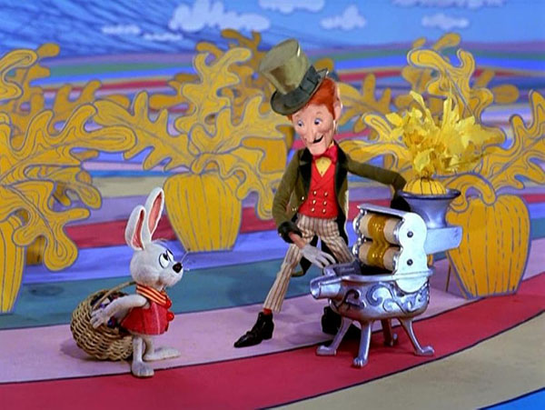 Thanks to Animagic, the artists bring to life all that’s colorful about the holiday and the season in Here Comes Peter Cottontail. The special features bunnies carving chocolate rabbits like great sculptors. It also includes vibrant backdrops, such as the scene where Peter meets Seymour Sassafrass. These beautiful environments were a hallmark of Rankin/Bass.