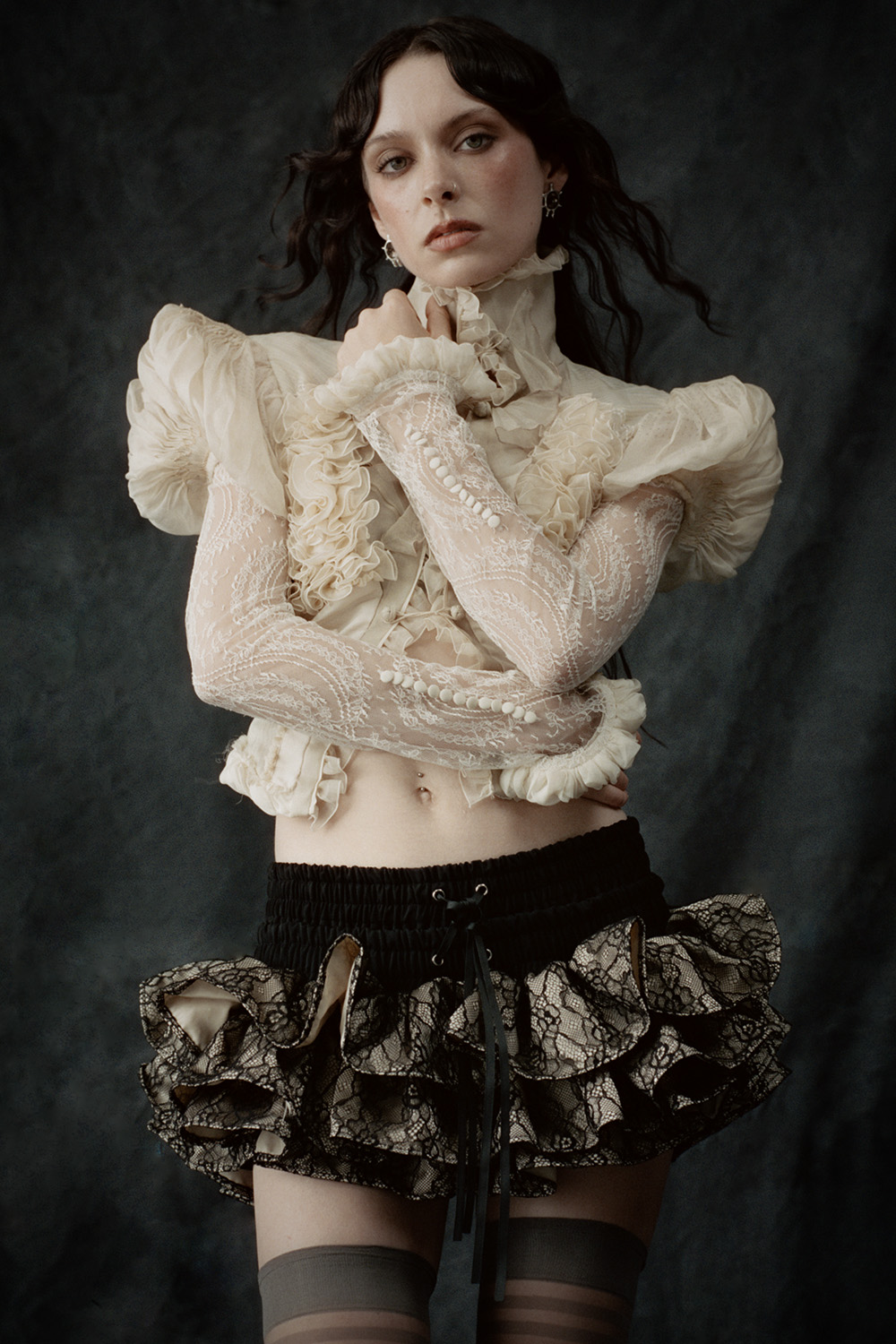 ‘When we wrote the song ‘Cruel World’, that sparked everything and led my sister and I on this crazy tangent. I’ve always been inspired by gothic, dark fairytales. Alice In Wonderland, The Wizard Of Oz and stories about alternative universes where the main character goes into this underworld or upside down to try and escape growing up and avoid reality. The videos tell that story from my point of view, and I feel like ‘Cruel World’ is my own dark fairytale universe that I’ve made with my sister. It was my first time working with a female director [Silken Weinberg]. It’s definitely given me so much more backing and confidence to work with my sister, who knows me better than anybody. I really trust her.”