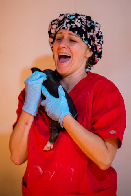 One of my favorite parts of visiting a pig farm is being able to hold the baby pigs right after they’ve been born or even helping the momma give birth to one!