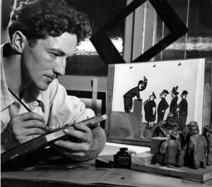 Jim McCay, in the book, at work on his anti-inflation film, “Bid It Up Sucker” (1944).