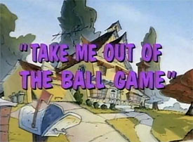 Take Me Out of the Ball Game (Disney, Goof Troop, 9/2/92) – Disney reusing the same title as a Ducktales episode within the small space of only a few years? Seems they should have a bit more originality than that. And yet, the episode itself is considerably fun and clever. It is Max’s birthday, and Goofy claims to have gotten him a special present. While Max envisions a new skateboard or a special video game, all he finds inside the box are a beat-up baseball, bat, and mitt – Goofy’s own from his old days as a ltttle leaguer. Goofy proposes a trip to the backyard, where he plans to teach his offspring to be every bit the ball player that he once was. Max does not consider himself the athletic type, nor has any great deal of confidence in the thought of his father being an instructor, so tries his best to dodge out on any excuse, but Goofy won’t be dissuaded. Goofy’s demonstration of base running tangles him up in everything in the backyard and lands him in the shrubbery. He sets up a batting tee for Max, and tells him to keep swinging, and sooner or later, the ball will get in the way. The advice works, and after several failed attempts, Max makes a lucky hit, snapping the ball off its string tether, and sailing it over the hedges, into the lemonade glass of Pete in the next yard. Pete never gets to vent his anger, when he hears that Max hit the long ball. Believing that anything a goof can do, his own son should be able to do too, he turns upon PJ (who has already been weeding the lawn for six hours at his father’s orders), and presses him into learning baseball like his old man as well. PJ is as poor and non-instinctive a player as Max, and slides right through the property-line fence on his first attempt, where Max finds out what PJ’s pop has him up to. Both boys begin to believe they’ll never see the end of this, and attempt to conspire among themselves to escape this rut.