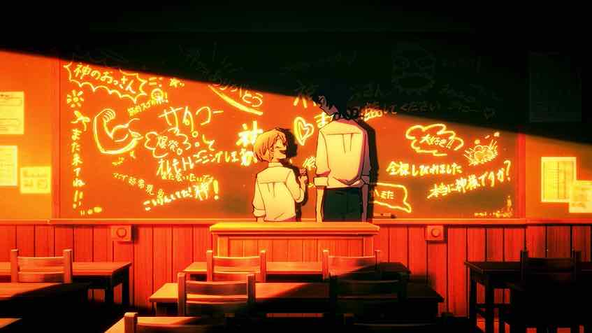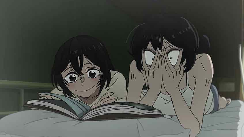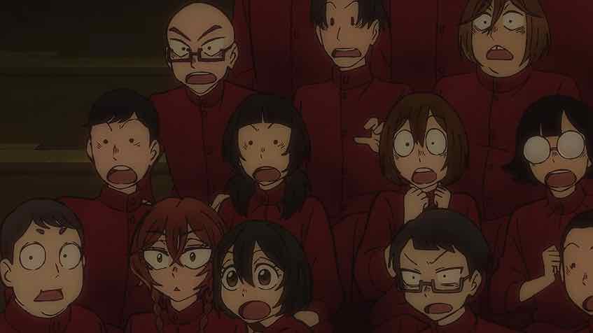 This is essentially the way the society depicted here is most fucked up. They’re trying to create a generation of snow globe children rather than letting than struggle through the reality of adolescence in the real world. Bathrooms are divided not by gender but age. Depictions of adult nudity (like “David”) and banned. Kissing is forbidden because it causes cavities. But kids can’t be suppressed – puberty is an irresistible force and they’re good at knowing when they’re being lied to. I’m thinking this is why Oono bugged out – she wanted to taste the forbidden fruit of curiosity and pleasure of the body. Maybe she tried to drag Fuyumura along and despaired of her willingness to come with her.