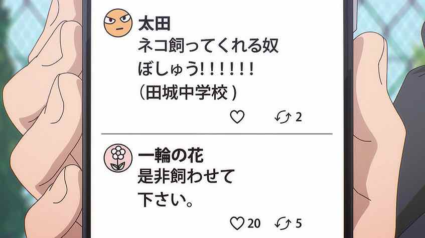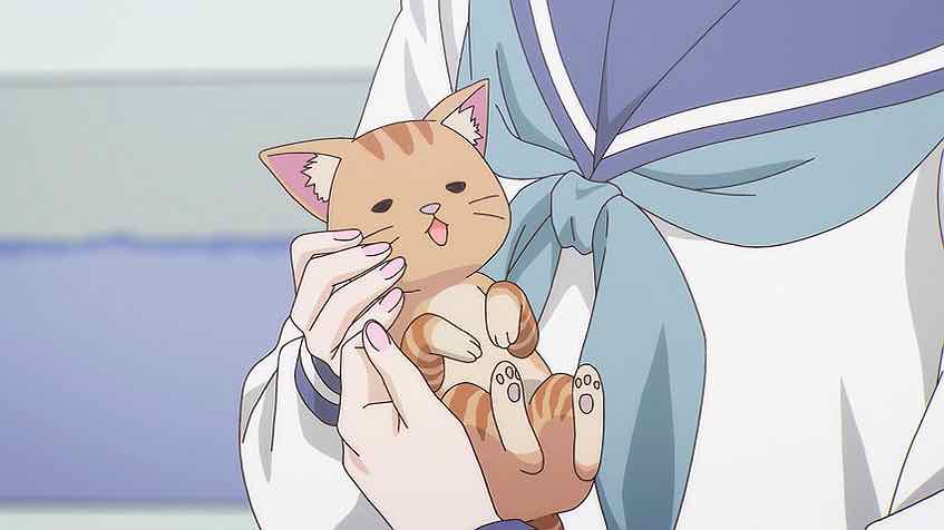I also think it’s hilarious that Oota’s two friends (and Kashiwada’s now, too) have the same dynamic – one is a poker face and the other Kao ni Deru. Tabuchi is the one trope here I can live without but to be honest I’ve seen a lot worse. After the movie bit (the unexpected smooching and heartwarming ending left Oota truly beaten) comes the kitten bit. In fact it is Oota – three followers and all – who winds up finding a home for it. Which Kashiwada-san is visiting immediately, as it turns out.