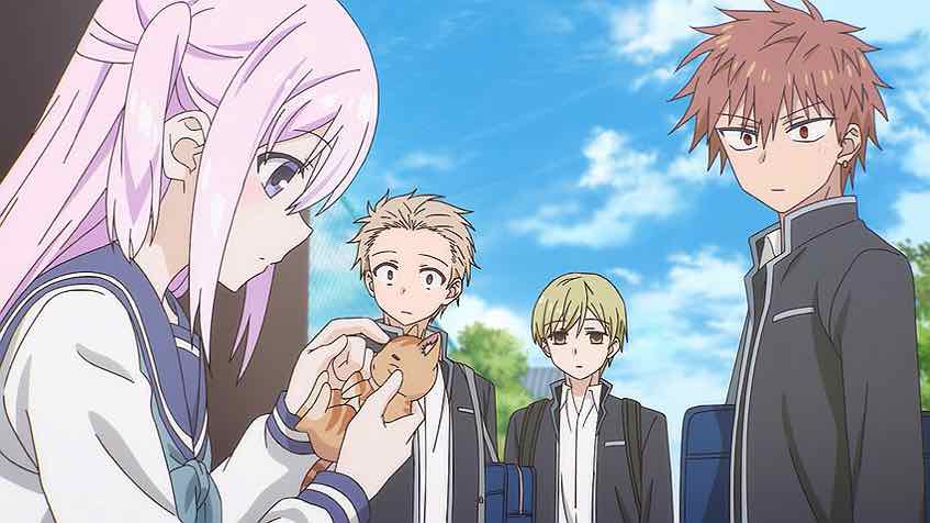 Middle school is having quite a season, between Sanda, Fumetsu, and this show. It’s a less-trafficked setting for anime than high school, obviously, but tends to offer less generic feed corn and more feels. That’s especially true with romcon of course. Just as with Shabake you realize how Shinto series have an inside track on the warm and comforting vibe, junior high romcom have the market cornered on a certain species of unforced cuteness. It is, as Sanda eloquently portrayed yesterday, a time uniquely perched on the precipice of development.
